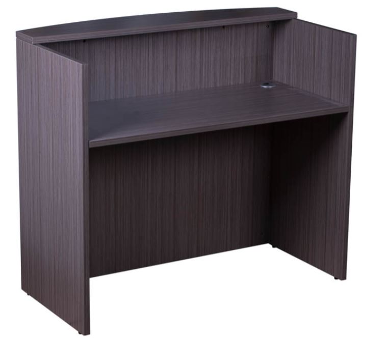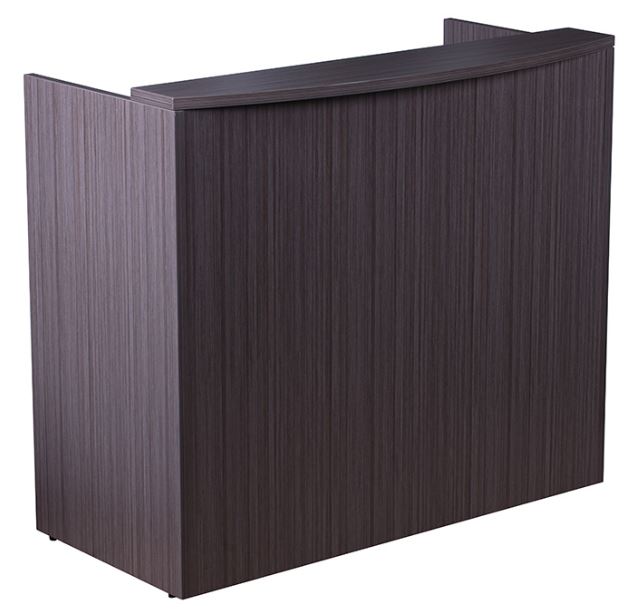 48W x 25.5/20.5D x 41.5H inch Reception Desk Shell in light, neutral Driftwood featuring Beige tones. It can be used alone or in conjunction with other reception items (sold separately). Durable and attractive, this reception desk shell promotes a sense of elegance and makes for a great first impression. It is constructed of thermal fused melamine with 3mm PVC edge banding, which offer excellent durability and scratch resistance. It comes with a 1 inch thick table top that provides a sturdy surface that will require little maintenance. It is also equipped with leveling glides that offer exceptional balance on different floor surfaces. The cam lock construction makes for easy assembly, and provides secure fastening without affecting the outward appearance of the desk. The full length modesty panel offers full coverage and privacy. The 3 inch round grommets on all work surfaces make for easy cable and wire management,